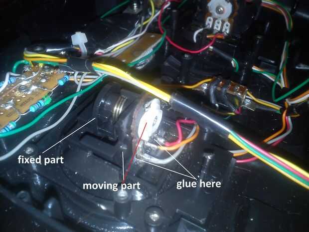 He arreglado el plástico con un tornillo en la parte móvil de la palanca de mando. Si no va el pcb facilmente en el joystick puede poner una tuerca pequeña verry entre el joystick y el plástico blanco.