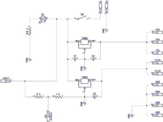 Aquí tengo sólo 2 reguladores de voltaje, uno de 5 voltios para Atmega y otro para LCD (3,3 voltios).