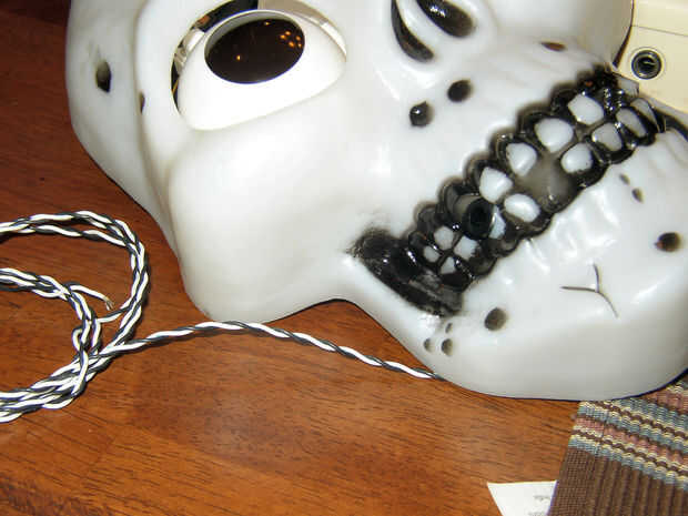 En este caso, la batería powered fuerte y desagradable hablar cráneo halloween era la cara de hoja de chico, un chico de hoja rellenas. Demasiados problemas para llegar al botón de encendido, así que necesitaba un poder conectar un cable.