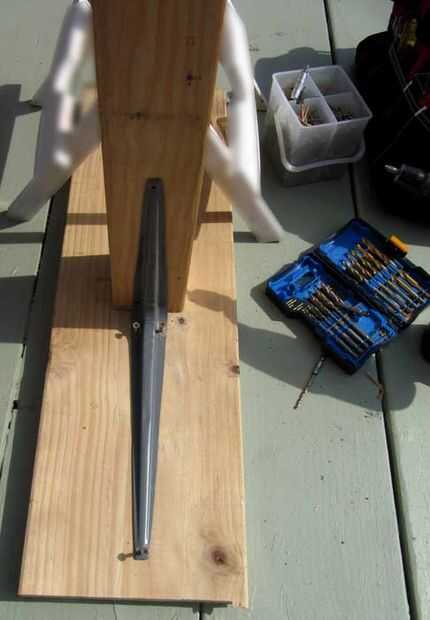 e-hacer valer el post al pie de página por perforación de la parte inferior del pie de página en la parte inferior del post.  Alternativamente, usted puede dedo clavos tornillos en el empalme entre el poste y el pie de la parte superior del pie de página.