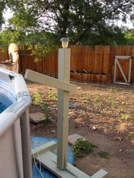 Aquí es un pie, con algunas bofetadas en la pintura y una lámpara solar de LED en la parte superior.