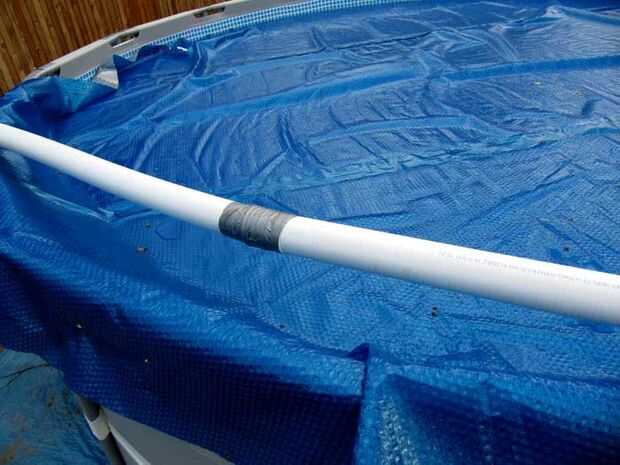 Coloque el tubo en la parte delantera de la piscina.  Se acostará sobre la parte superior de la cubierta.