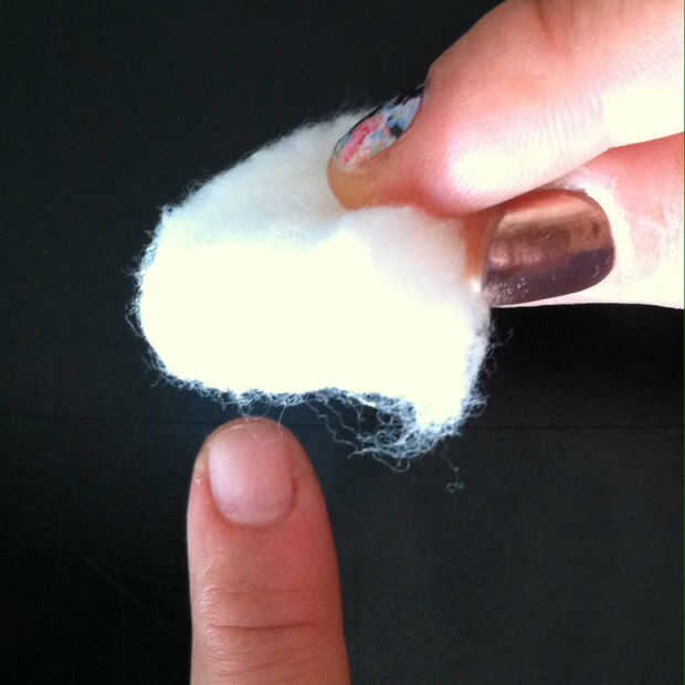 Usar una bola de algodón y sumergir en la mezcla. Exprima el exceso de líquido. Coloque la bola de algodón sobre las uñas durante unos 10 segundos y frotar suavemente sobre la uña. Repetir si es necesario para eliminar todos los restos del esmalte de uñas y listo!