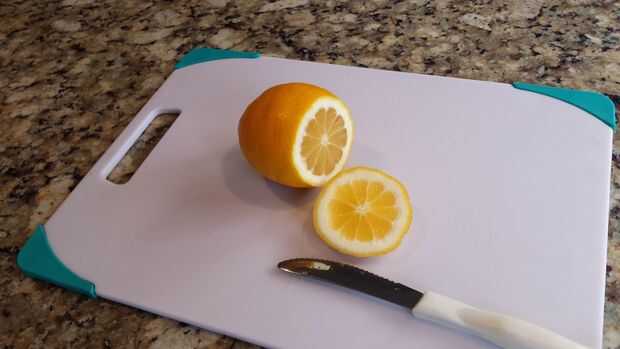 1. lo primero que tienes que hacer es tomar su limón y cortar una rebanada. Usted tendrá suficiente jugo en la rebanada para cubrir su mancha.