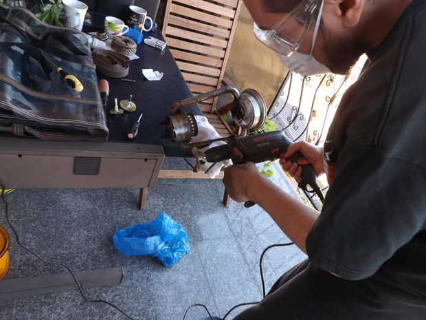 Utilicé una perforadora y algunos cepillos de latón para limpiarlo a fondo.