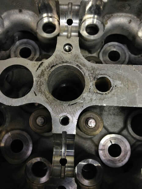 Ahora tomamos nuestra pieza de albañilería de 14mm y empezar a taladrar con más aplica presión, verificar regularmente esto es solo para 5/16"(8mm) profundidad. Pernos deben ser visibles y el taladro se parece su giro gratis! Ahora coloque 16,5 mm taladro mandril y perfore a esta parada - se abre el diámetro en la parte inferior. Suelte la culata y vuelta para que pueda ver las cabezas de válvula. Ahora Ubique inyector [asomando a través de la cabeza] y usar punch modificadoVer imagen [4]