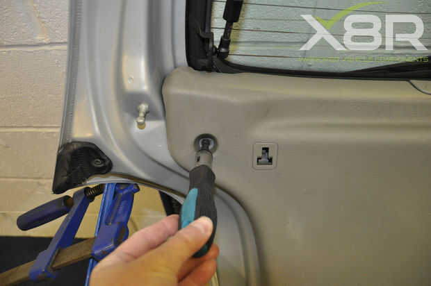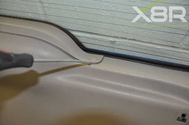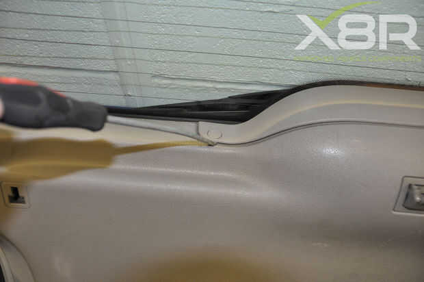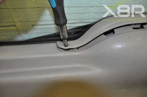 Abra su arranque y retire el estante del paquete. Usando un T20 Torx destornillador destornille los tornillos (a veces 4) 3 sosteniendo el interior ajuste en su lugar. En algunos modelos puede haber tornillos adicionales cerca del motor del limpiaparabrisas. Tire firmemente alrededor de los bordes para quitar el guarnecido.