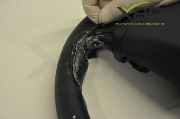 • Con un destornillador de hoja plana escoger cualquier restos sobrantes de la empuñadura vieja o pegamento - que tendrá que ser removido para permitir el nuevo grip asentar correctamente.