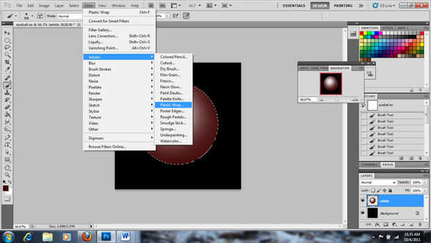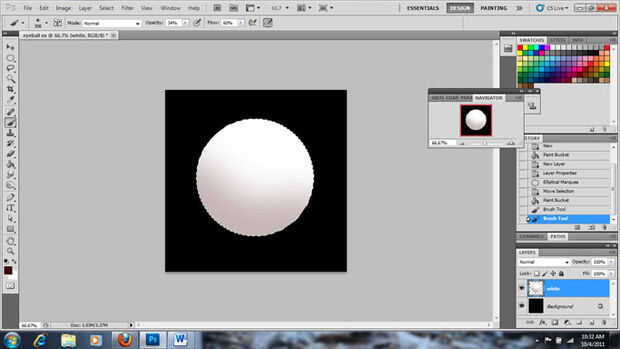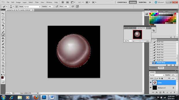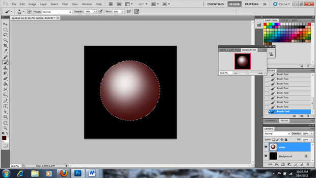 Seleccione un color gris rojizo muy oscuro y un aerógrafo px 200 y defina la opacidad a 30. Usar el aerógrafo para barrer alrededor del borde del círculo, que lo hacen. Para este tutorial, voy a decir que la luz proviene de la parte superior izquierda, pero realmente puedes hacerlo desde cualquier dirección que desee, siempre y cuando usted es consistente. Mantenga aerografía (y borrar) hasta que están satisfechos que su representación es suave y los bordes están casi totalmente saturadas, excepto en el lado donde viene la luz.