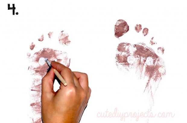Después de sumergir su pincel en blanco, dibuja dos círculos pequeños en la parte superior del pie, justo debajo de los dedos del pie, y luego poner dos pequeños puntos azules en el centro de los círculos de color blanco – son los ojos. Si usted se siente juguetona, puede dibujar unas pestañas, también!