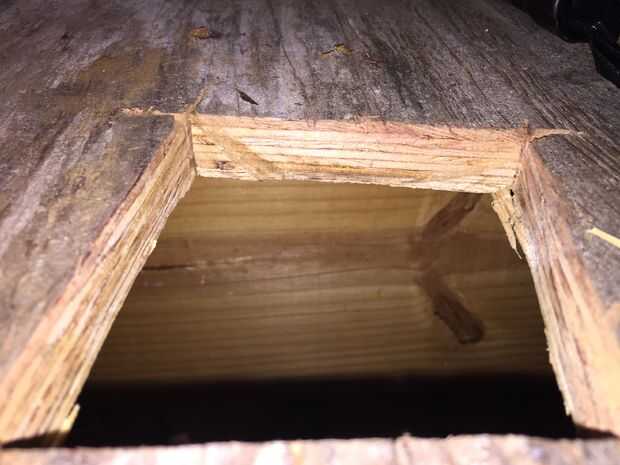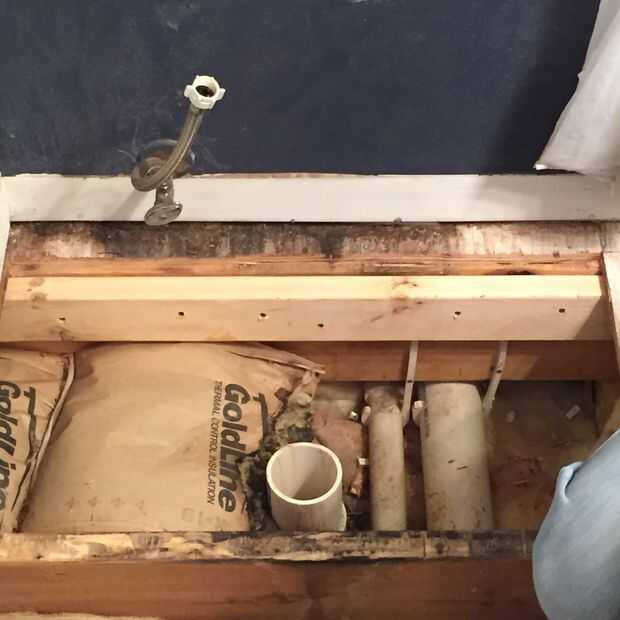 Una vez que quité el baño pude ver parte del problema original. La brida del inodoro fue instalada incorrectamente, como se puede ver los pernos fueron colocados en dos U en forma de ranuras en la brida y no en los canales adecuados para los pernos. El perno de la brida "canales" debe ser perpendicular a la pared posterior para que los pernos podrían flotar mientras escuadra el inodoro en la habitación. Colocación de perno incorrecto divide la brida y probablemente contribuyó a un inodoro roto.