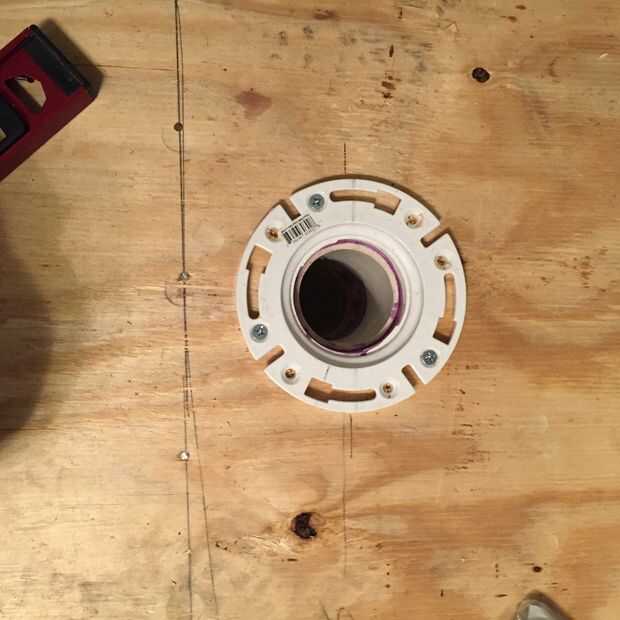 Para volver a colocar la brida de inodoro tendrá una longitud de tubo, acoplador, imprimación de pvc, pegamento pvc, reborde del inodoro. Use la pareja para unirse a la tubería antigua a la nueva tubería que la brida se conectará al. Mida y corte el viejo/nuevo/acoplador de tubo para que el desagüe está justo debajo de la base. NO pegar la brida de inodoro en hasta después de instala el subsuelo. Poner clavo líquido en viga y clavar contrapiso nuevo. Entonces el primer pegamento tubo y deslice baño drenaje en. Cuando tuberías de Unión mantenga juntos por ~ 30 segundos para garantizar la vinculación. Tornillo de la brida del inodoro y luego poner una camiseta vieja envuelta en una bolsa en el drenaje - si no te gusta el funk.