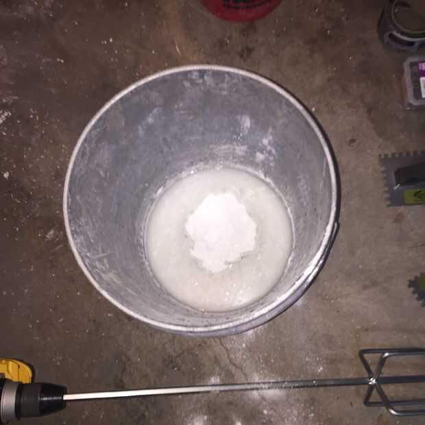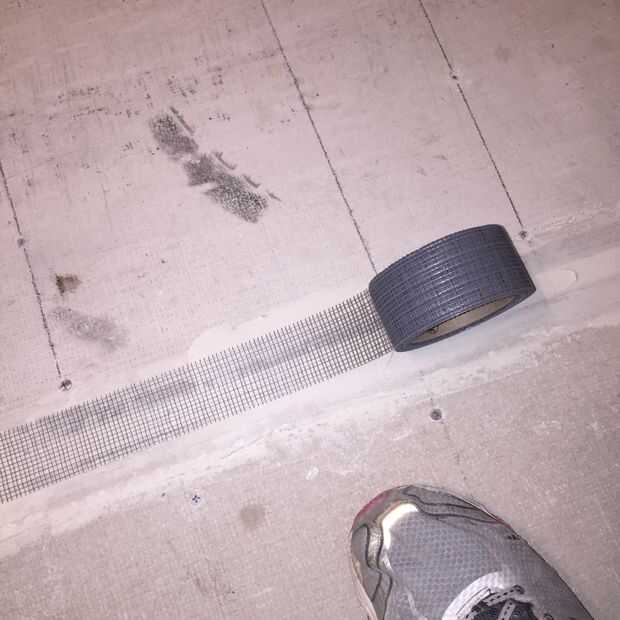 Una vez que su feliz con el tablero del cemento de mezcla el mortero de pega. Hacer sólo lo suficiente para dure 20 minutos. Añada primero el agua y luego secar el mortero de pega. Agua va adelante para usarlo con moderación. La consistencia del mortero de pega debe pegarse a su paleta mientras boca abajo pero aún se mueve como un fluido. Aplique suficiente mortero de pega al piso y poner paneles. Garantizar un espacio de 1/4 entre paneles cemento y atornille. Llenar el hueco con mortero de pega, mortero de pega sobre la parte superior de la cinta y lisa de la cinta.
