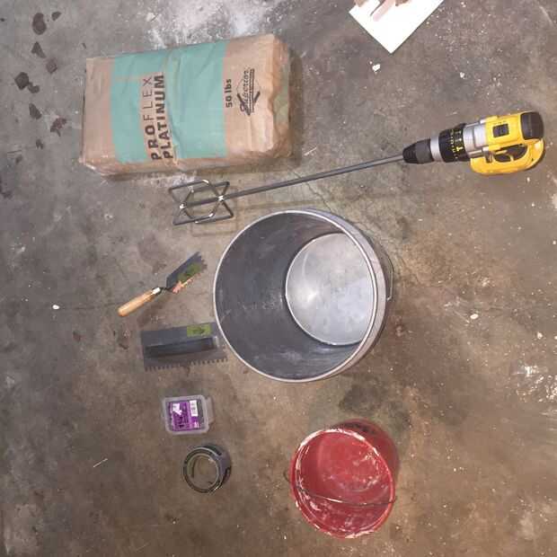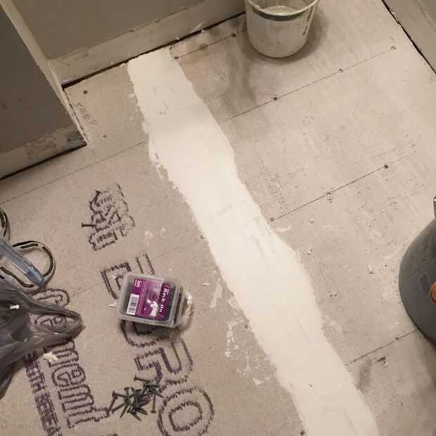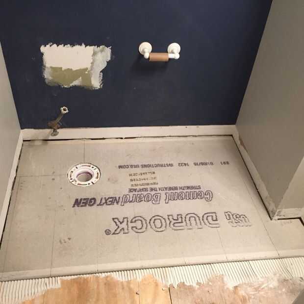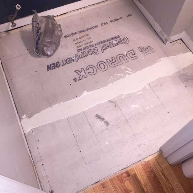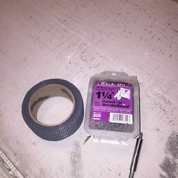 Elegí el tablero del cemento de 1/2 pulgada como la base para mi azulejo. Esto debe coincidir con la altura de la baldosa acabada con madera antigua. tablero del cemento de 1/4, Junta resistente o schluter-ditra son todas las opciones. Hacer algunas investigaciones y elegir sabiamente.
