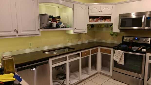 Una vez más, teniendo en cuenta el presupuesto, nos fuimos de mostradores de madera. Soy un carpintero, y queríamos un rústico/país sienten a la cocina, por lo que realmente era un ganar-ganar porque la madera era el más barato, nos dieron el aspecto que queríamos, y sería capaz de instalarlo yo mismo. Liquidadores de madera tenían el mejor precio para losas prefabricadas. Todo lo que tenía que hacer era cortar la losa, perfore el orificio para el fregadero y tratar con las 2 juntas. Con todo, creo que los contadores de crudo fueron $800. Una vez más, tenemos el más barato, roble. Otras maderas de grano va a costar más. Teníamos dos secciones de 8 pies y una península de 6 pies. La cima más grande de península fue vendida como una"isla" Si usted está buscando.