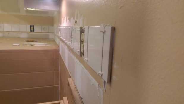 Una nota sobre los puntos de venta. Cambiamos todas las salidas a otros nuevos. En el proceso pongo en GFCI cuando sea necesario. Si está añadiendo un azulejo backsplash, necesita "espaciadores de salida" para golpear hacia fuera el enchufe de la caja eléctrica actual. Esto hará que la pared de azulejo nuevo que acaba de poner en. Son unos cuantos dólares en el pasillo eléctrico.