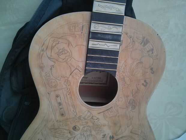 En mayo de 2013. Heredé una guitarra buena de mi amigo Gyurka, quien falleció 9 años a esa fecha. Su buena vieja guitarra fue dejado solo en la esquina por años, su esposa era incapaz de tocar el instrumento que estaba parado allí como mi amigo últim