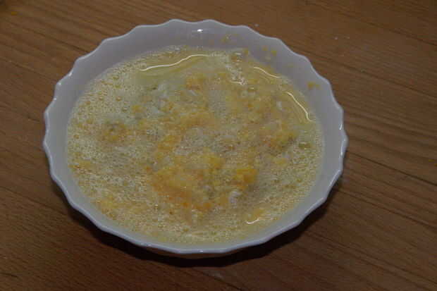Usar una forma que sea resistente al calor.  Agregar agua (no se mucho), solo para remojar la mezcla.
