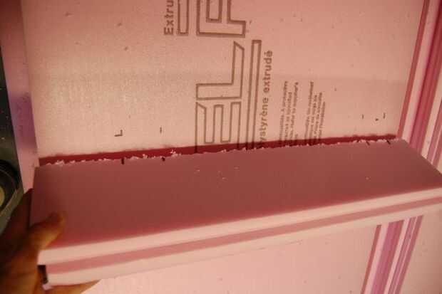 El proceso es bastante simple. Los paneles de espuma de 2" tendrá labios a lo largo de los extremos largos que se diseñan para caber juntos. Cuando se mide cada pieza de espuma, asegúrese de que los paneles estén alineados correctamente para un buen ajuste. Simplemente mida el espacio en el que el panel de espuma encajarán y marcar cualquier cosa que necesita ser cortado. Trate de dejar como pequeño un espacio posible entre el borde del panel de espuma y cualquier superficie de colillas contra.
