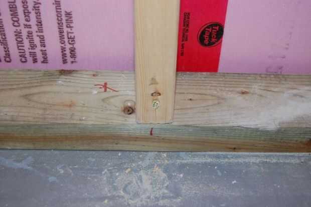 Existen dos métodos básicos para levantar las paredes. Puede construir las secciones de pared en el suelo y levantar en su lugar, o puede colocar las placas superior e inferior y cabe entre los montantes. Desde las paredes, vigas del techo y el piso en la sala de que trabajo son todos algo desiguales, que decidí utilizar el segundo método para guardar mi cordura.