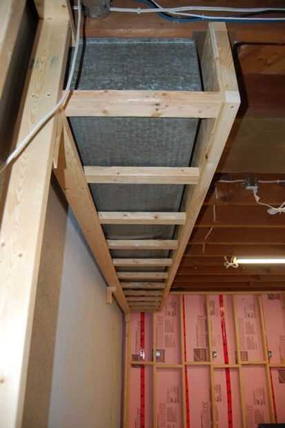 El plafón se construye de la madera contrachapada 2x2s, 2x4s y media pulgada. Comienza por cortar una pieza de contrachapado que se extiende desde el techo hacia abajo por debajo de la rejilla de ventilación. Puede que necesite colocar más de una pieza-to-end. Entonces el tornillo 2x2s en los bordes a ambos lados de la madera contrachapada para la longitud entera. Esto creará una cubierta rígida, perfectamente recta de la cara de la rejilla de ventilación.