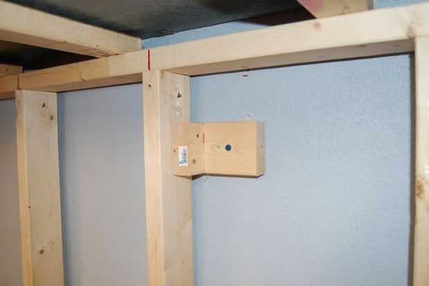 Para hacer la pared bajo el plafón más fuerte, utilice algunos pedazos de desecho de 2 x 4 para la construcción de un soporte. El soporte anclado a la pared usando los tornillos Tapcon y atornillan en el travesaño cerca de la placa superior. Utilice uno o más soportes dependiendo de la longitud del sofito.