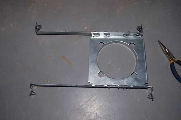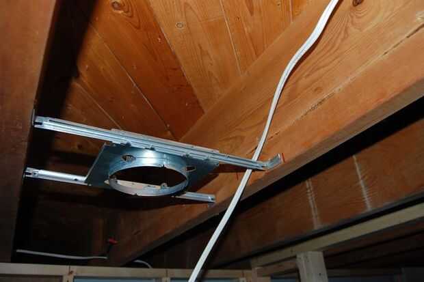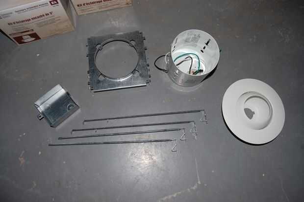 Si sus luces utilizan hardware especial, siga las instrucciones proporcionadas cuando estás cajas. En mi renovación he utilizado luces olla montada al ras, que une directamente a las vigas mediante soportes de suspensión especial.