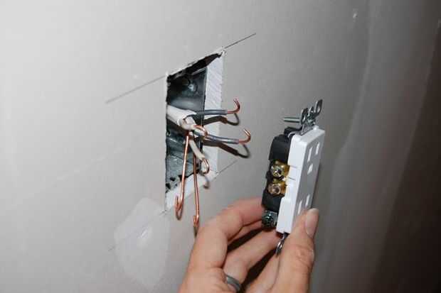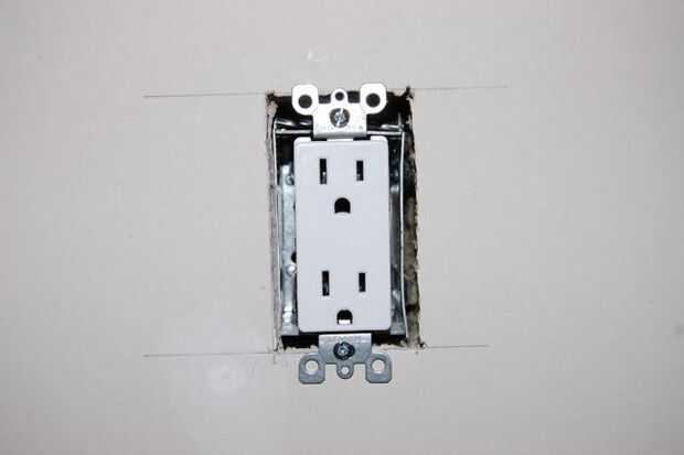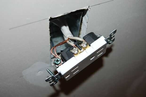 Con la toma de corriente con cable, puede meter los cables en la caja de salida y el tornillo en la salida usando los tornillos incorporados. Asegúrese de que el cable de tierra no toque los tornillos en los lados de la salida de neutro o calientes! Cuando usted apriete la salida en su lugar, asegúrese de que esté perpendicular al piso.