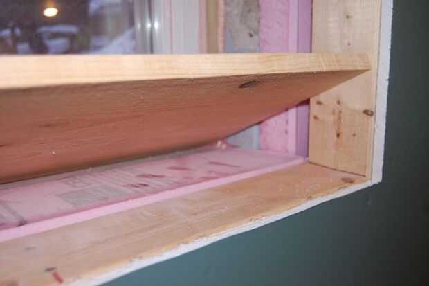 Comenzar con la pieza inferior. Medida que queden al ras contra el marco de la ventana y al ras con el borde de la pared (drywalled). Abarcará toda la anchura del marco de ventana. Las ocasiones son, usted a poner cosas en la caja de ventana, así que uso cuñas debajo de la madera para asegurarse de que la parte inferior es nivel adelante a atrás y de lado a lado. Cuando esté satisfecho con el ajuste, la clavo en su lugar con clavos de acabado. Si el cuadro se mancha, puede pegar en su lugar por lo que no hay agujeros de clavo para llenar.