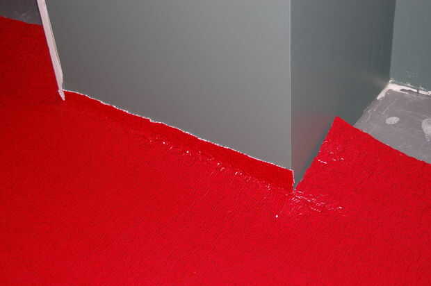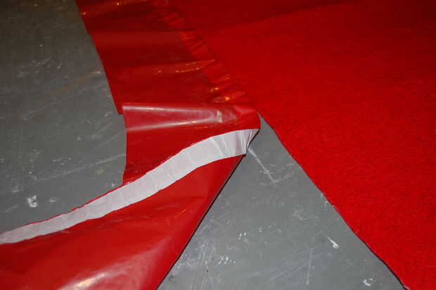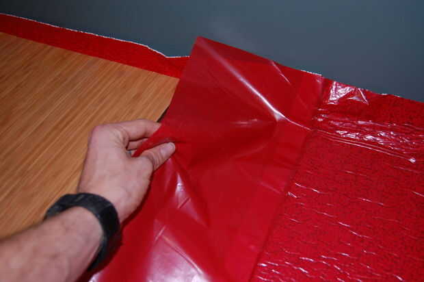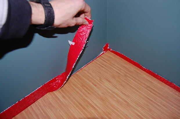 El producto tiene una Built-in aleta a lo largo de un lado con una cinta adhesiva. El contrapiso es había rodado hacia fuera y puso lado a lado en el piso, con cada solapa de superposición de la pieza anterior. La excepción es la primera pieza, que tiene su aleta cortada porque se superponga a la pared. Esta aleta puede ser guardada y utilizada en otros lugares para el sellado de huecos.