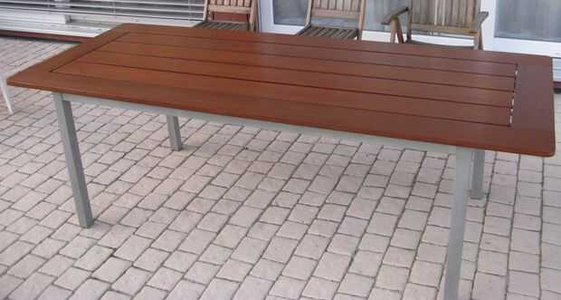 Convertir una tabla de la tienda de segunda mano en una mesa de hermoso patio al aire libre con unas pocas piezas de madera.Paso 1: Ver el vídeo tutorial rápido aquí!Paso 2: Cosas que necesitaráMuebles del patio desfiguradoMartillo y clavosLijadora,