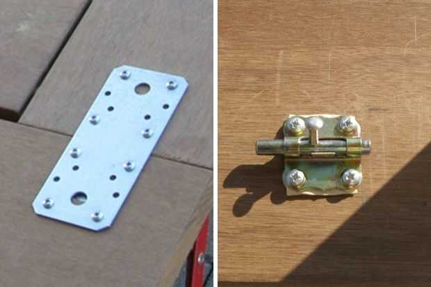 4. 4 x placas de acero y tornillos asociados (solución vergonzosa cuando no tienes conocimientos básicos de carpintería) y 4 cerraduras (asegure la parte superior del marco).