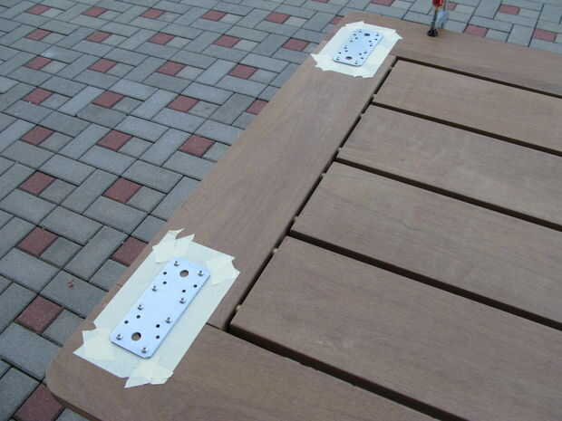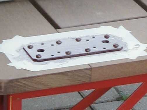 1. Con cinta de enmascarar, proteger la madera alrededor de las placas de metal.