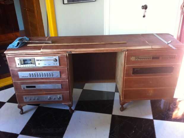 Esto fue cuando empecé a tomar fotos, sólo darse cuenta de que otros puedan apreciarlo. En esta foto, ya he cortar agujeros en los cajones y poner en el equipo de audio de 1970 (sólo por ver cómo todo se cuelga juntos).