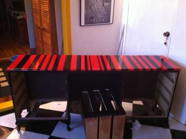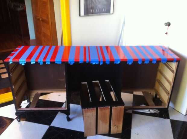 Pintando las rayas lleva mucho tiempo por todo el enmascaramiento que tienes que hacer.  Para esto usé azul cinta de enmascarar de pintor.  Pega bien y si no permiten la pintura ' purgar '.