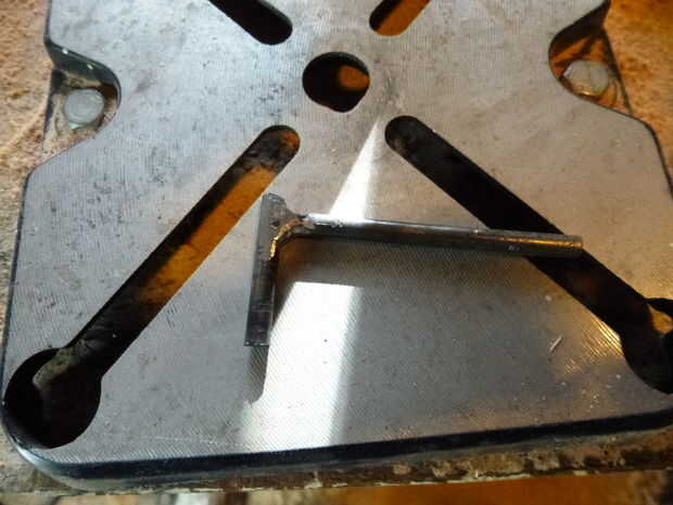 La soldé en dentado de la parte eliminada. Luego le di forma con la inapropiada, haciendo el borde frontal de corte más ancho el resto, para disminuir la fricción. Cuando la forma me pareció quilómetro le hice un tratamiento térmico elemental, calentándola en la llama de gas y sumergiéndola en agua fría.