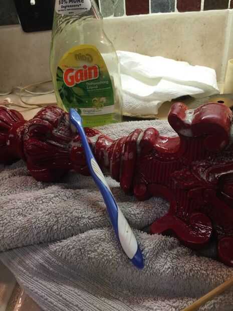Mi madre murió en 1987. Todavía vivía en casa y mi hermana y yo lleno la casa y todas cosas de la madre en el almacenamiento en la planta superior en la farmacia de mi padre. Poseía un almacén de la droga que había sido un hotel a principios de los 1900 y el piso de arriba era habitaciones vacías y viejo (con el papel de techo espeluznante viene misteriosamente arrastrado y colgando del techo, etc...). Tuve un momento difícil volver a mirar a través de las cosas de nuestra madre pero decidió hace unos meses. Nos trasladamos cajas de cosas que no habíamos visto en años. Me encontré con esta lámpara que recuerdo a mi madre realmente tener gusto y estaba en forma triste después de todo esos años en una caja polvorienta en un polvoriento almacén en un edificio viejo y polvoriento! Primer paso era decidir si era en bastante buen estado que podía lo vuelva a conectar y hacer agradable otra vez. Determiné que era así que comencé el proceso de limpieza. Si tienes una lámpara que desea volver a lo que es una cosa. Si vas a una venta de garaje o mercado de pulgas para encontrar una lámpara, o cualquier otra pieza utilizado que puede traer en su casa, considere un examen cuidadoso. No quiere llevar en insectos, las termitas o cualquier otro tipo de infestación potencial en tu casa. Eso es solo mi consejo gratuito en caso de estar interesado. Siempre bien limpia tu proyecto y asegúrese de que vale la pena el tiempo y esfuerzo que se tardará en hacer hermoso otra vez. Decidí que esta lámpara era digno de un poco de tiempo. Desarmar su lámpara y queden limpios. Cortar el cable viejo y deshacerse de la vieja luz toma. Es más seguro comenzar de nuevo. Usar cepillos de dientes viejos, toallas de papel, y rompo pinchos de bambú ya que luego se convierten como mini escobas para limpiar con. Había usado agua y jabón y algunos productos de limpieza general.