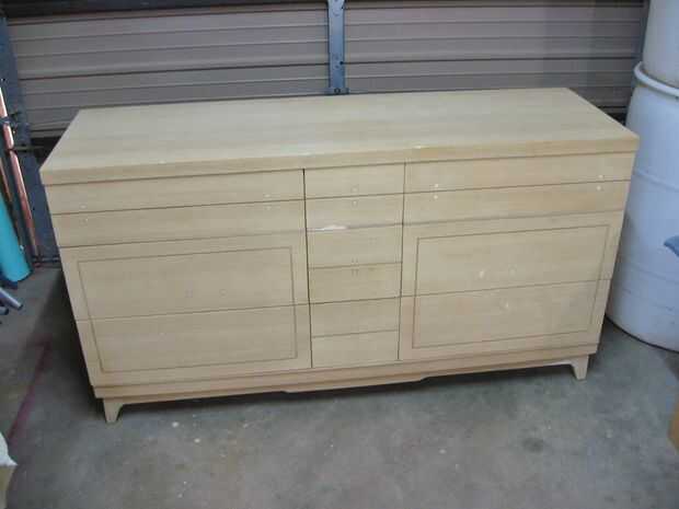 Esto es lo que parecía después de mucho lijar, rellenar todas las grietas y agujeros con masilla para madera y un puñado de temas de fijación. Muchas partes de la cómoda sólo tenían que volver a pegar y afianzado con abrazadera para que volviera a su condición original, sólida.