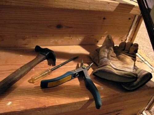 Aquí es una foto de las herramientas que usé para tomar el cuidado de la alfombra. Como he dicho, no tuve ninguna palanca, así que hice con los elementos que tenía en casa. Me tomó más tiempo de lo previsto, pero el resultado final fue bien vale la pena.