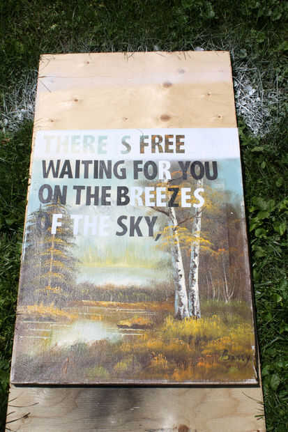 Como dije en el paso anterior, esto sería mucho más fácil con un presupuesto más corto o más cartas para utilizar. Si usted puede pintar todo a la vez, la recomiendo. Quiero probar este arte otra vez pero a lo mejor la próxima vez que escojo un presupuesto más corto o una sola palabra. Todo depende del tamaño de la lona y la cita que desea utilizar (tenía mi corazón sobre el uso de este poema).