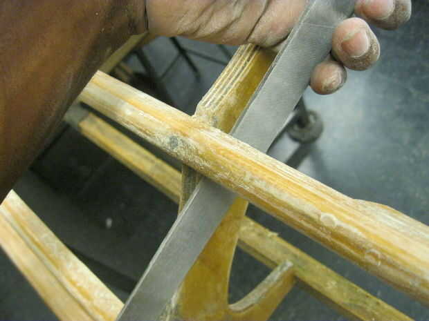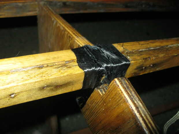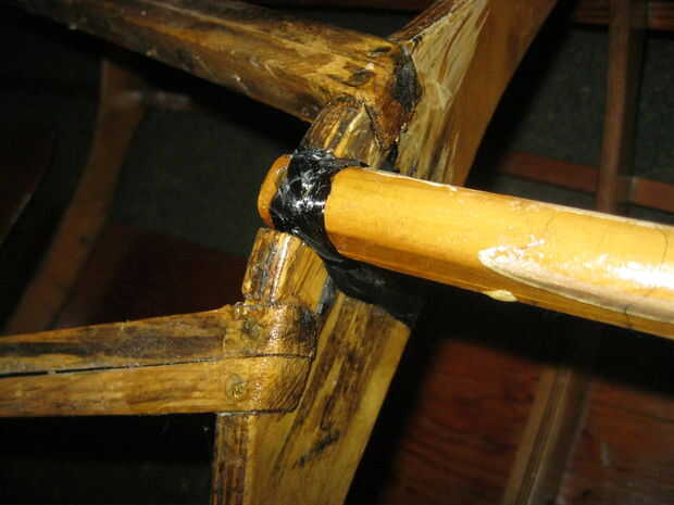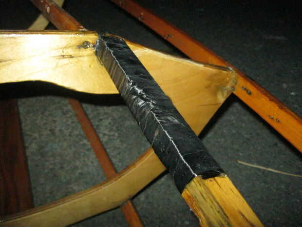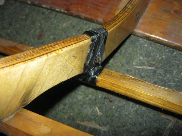 Reparación de las juntas pegadas fue hacia adelante. I arena a ambos lados de las articulaciones rotas para eliminar el pegamento antiguo y asegurar una buena superficie, pegados juntos otra vez y les fija.