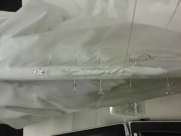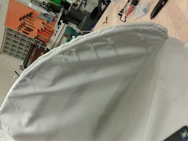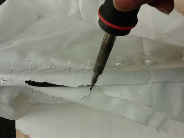Cuelgue la tela sobre el bote boca abajo y alinéelo para que cortinas sobre todos los extremos laterales. Compruebe que hay suficiente tela para envolver alrededor del barco entero antes de empezar a cortar y coser. Perno de un lado de la lona para el barco como se muestra. Corte el lado anclado con un cuchillo caliente, utilizar un soldador con mucho éxito. Debe fundir los extremos de la tela que se corta o usted podría terminar con puntos débiles que se desintegraría. Hacer el corte en una habitación bien ventilada para evitar la inhalación de demasiados gases nocivos de la tela de fusión. Recortar la tela en el lado anclado hasta que tenga alrededor de. 5" de superposición hacia abajo la línea central del kayak. Inicio.5 pulgadas detrás el corte con una puntada del azote, utiliza hilo dental como hilo y una aguja curvada y continuar hasta el fondo. Ate el hilo con un nudo francés. Coser una puntada corriente a lo largo del borde superior del barco, ahora hacia abajo. Coser alrededor de 3" y doble hacia la punta, terminando con otro nudo francés, para formar un bolsillo en la tela. Desenganche el bolsillo, hacia el otro extremo del barco y tire de la tela 1.5-2 pulgadas hacia usted antes de repetir el proceso para crear otro bolsillo. Ahora, dejando esta pocket en, ir al otro extremo del barco y estirar la tela para tirar el segundo bolsillo en el extremo. Para ello el barco hacia abajo en ángulo, sentada en el suelo y sujeta mis pies en el marco para tirar a la tela con uno o dos tirones fuertes.