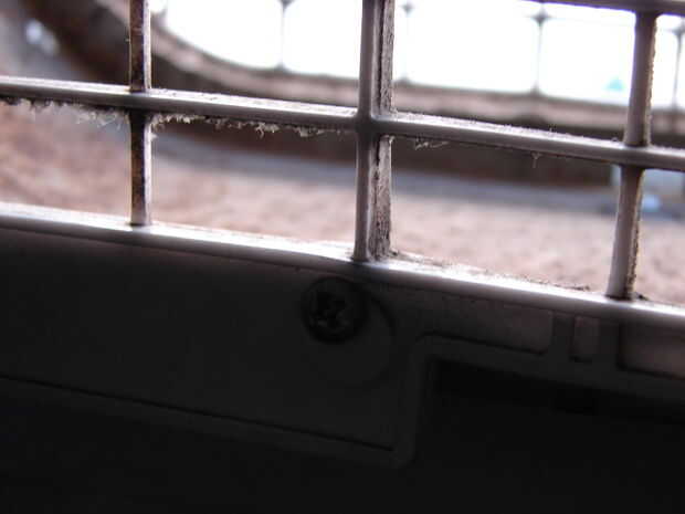 3 Quite la pantalla frontal de plástico del cuerpo de la caja del ventilador y puso de al lado.