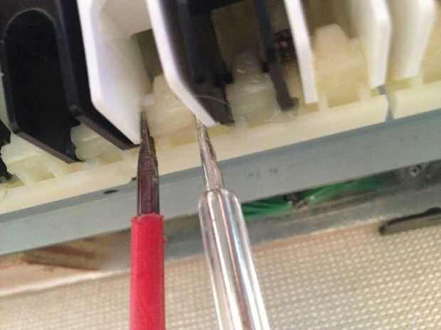 - Tomar dos destornilladores y posicionarlas entre las "alas" de la llave, como se muestra en la primera foto