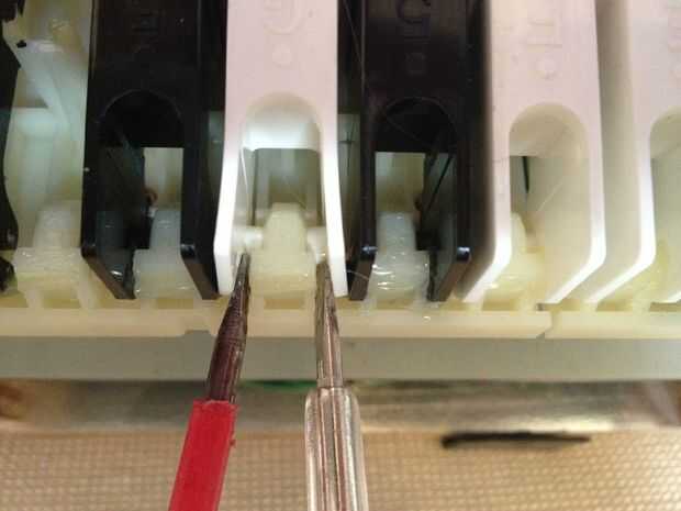 - Comience con las teclas blancas, el negro sólo los pueden quitar después de que ya se quitan las teclas blancas a su alrededor.