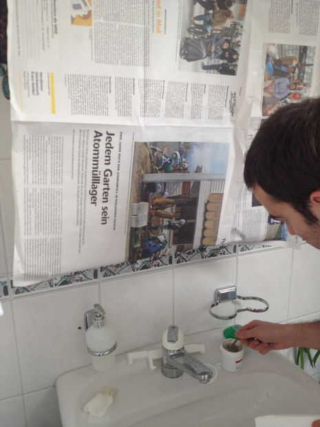 - Cubrir su cuarto de baño o dondequiera que usted trabaja con papeles de noticias o una película de plástico o algo. El disco hace girar producirá gotas diminutas de la pasta de pulir por todas partes! Por lo tanto, también recomiendo usar una camisa vieja o algo y gafas de protección (solo copas o).