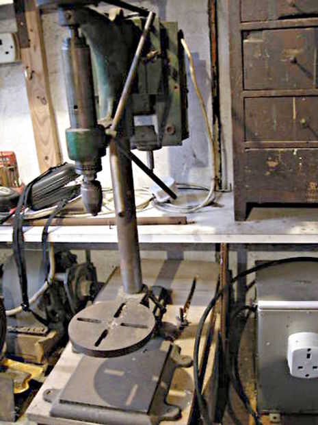 Todo estaba cubierto de moho superficial ligera y la mierda de cien años de uso (el taladro realizó entre 1899 y 1914). El trabajo de pintura fue una multitud de colores con al menos tres capas de pintura, todo mal terminada. Montaje del motor era un elemento casero que estaba mal equipado y totalmente equivocado para el taladro, polea de la correa de impulsión fue el mal tipo y tamaño para el taladro, el antigua clave menos chuck tenía una mandíbula rota y no apriete, y más serio, el engranaje de estante y del piñón de la canilla fue U/S mantuvo jamming. Los rodamientos de bolas fueron picadas y oxidado.