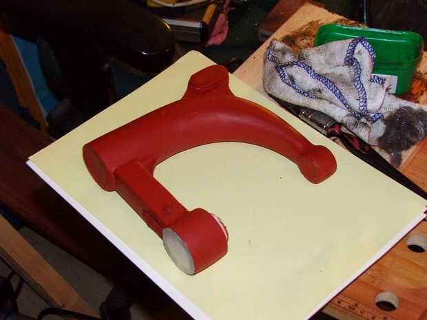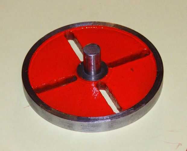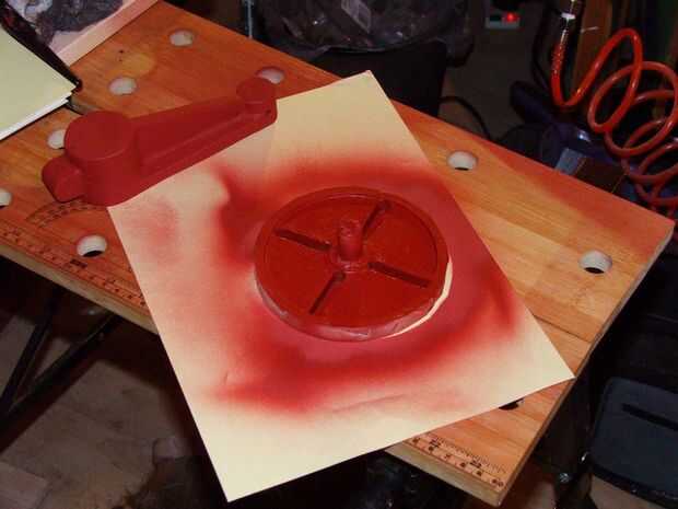 La base de la tabla y la parte inferior de la rueda de polea fueron acabados en rojo desde el material de referencia había mostré los antiguos hacemos de esta manera.