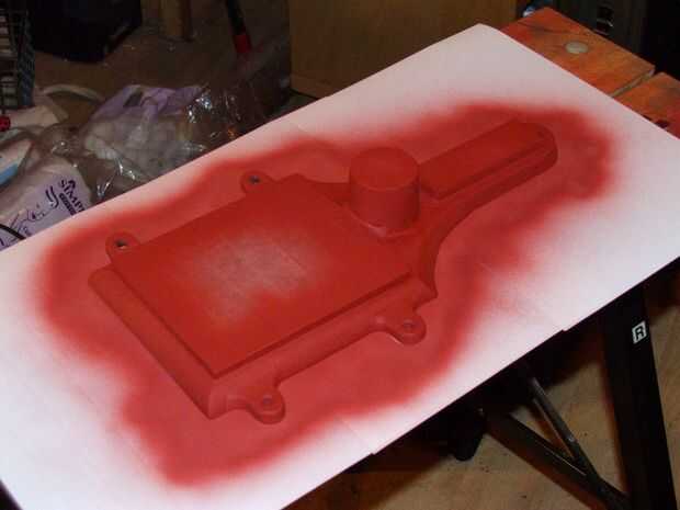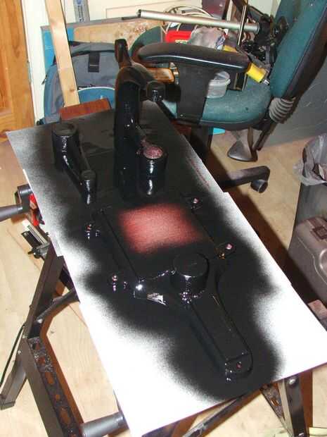 Hice algunas investigaciones y encontró que en la vuelta del siglo pasado (1900) la mayoría máquinas de hierro fundido fueron pintadas con un acabado rugoso en negro. Decidí probar y conseguir un look similar utilizando una variante moderna de 'final de la arruga'. Era un dolor, pero después de enmascarar y rociar con la cartilla de óxido rojo, fue el negro.