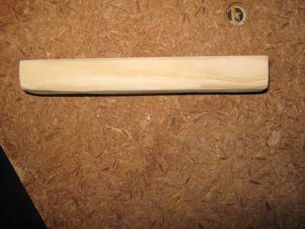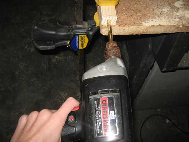 Comencé tomando una longitud de madera de aproximadamente 2 pulgadas más cortas que el cañón, que encajan muy bien en mi mano, esto se convirtió por la empuñadura. Encuentra el centro de la madera y perforó un agujero usando una broca largo con un ancho similar al cañón, por lo que el cañón encajaría perfectamente dentro. A pesar de tener una lijadora de mesa, tomé mi lijadora de banda y alisó la empuñadura para que hizo una curva semi-circle-ish que sería un apretón suave agradable.